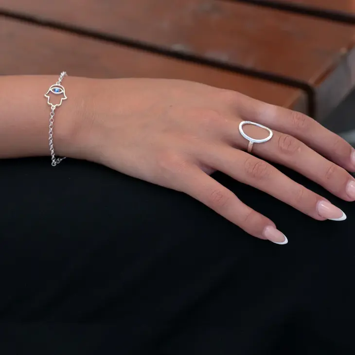 Laissez-vous séduire par ce délicat Bracelet Hamsa Œil Bleu, symbole universel de protection et de bonheur. Orné d’une pierre de naissance bleue porte-bonheur au cœur de la main hamsa, ce bijou raffiné allie spiritualité et élégance au quotidien.
