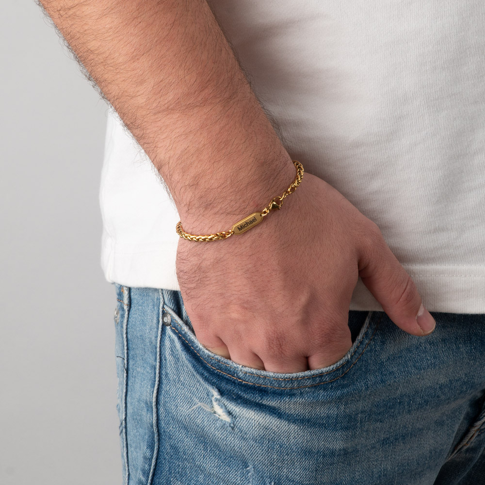 Adoptez l’équilibre parfait entre style et sentiment avec ce Bracelet Homme Gravé à Chaîne Blé.