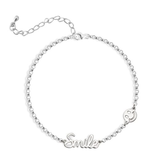 Conçu méticuleusement en argent sterling 925, ce bracelet de cheville se compose d’une chaîne délicate. Elle arbore un charm “smiley” iconique, parfaitement complété par le mot “smile” gravé juste à côté. De plus, pour celles qui recherchent une touche d’opulence, ce modèle est disponible en plaqué or et en plaqué or rose. Ce bijou n’est pas qu’un simple accessoire ; c’est une véritable affirmation de bonheur et une célébration de la légèreté de la vie.