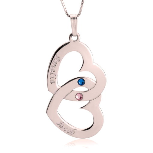 Avec ses deux cœurs entrelacés, ses éclatantes pierres de naissance et sa fine gravure en lettres manuscrites, ce Collier Cœurs Entrelacés Personnalisés transmet vos émotions les plus vraies.