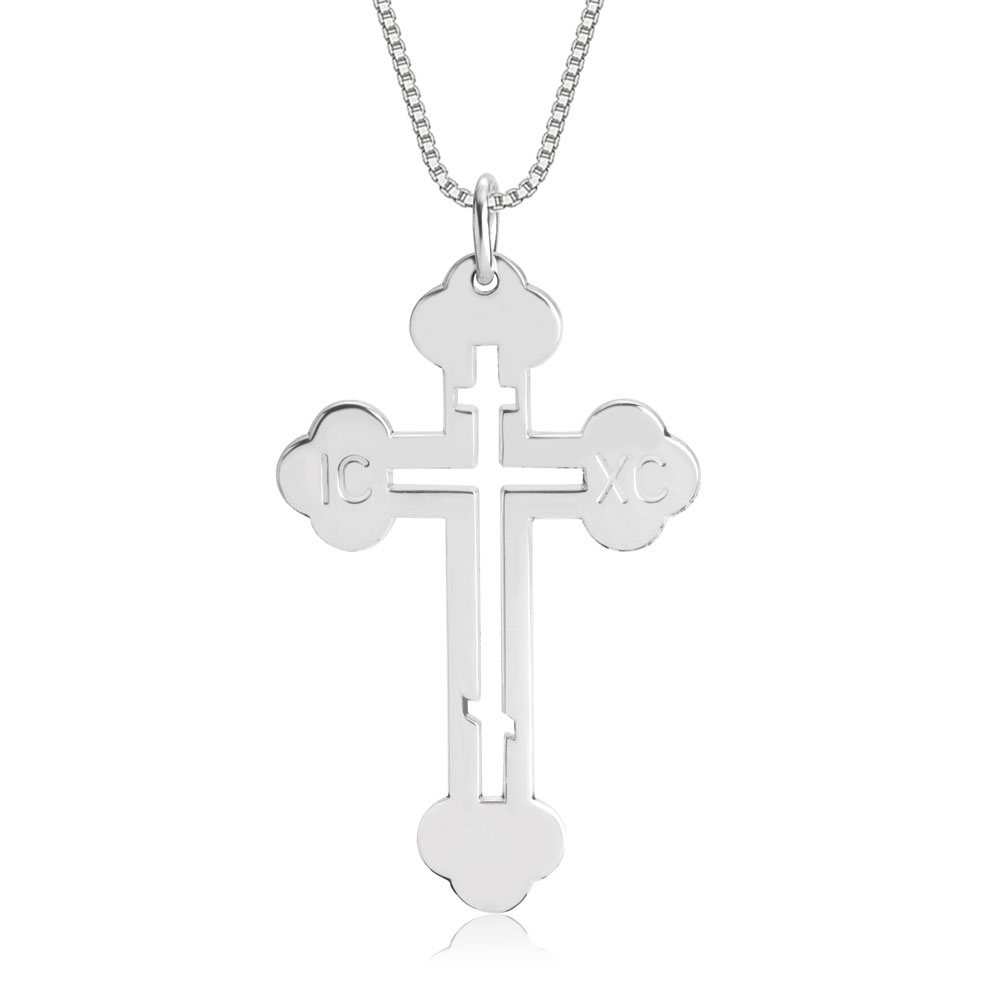 Inspirée des anciens symboles de la foi la croix est gravée des lettres IC XC. Ce bijou croix est fabriqué sur-mesure et convient aussi bien aux femmes qu’aux hommes et aux enfants.