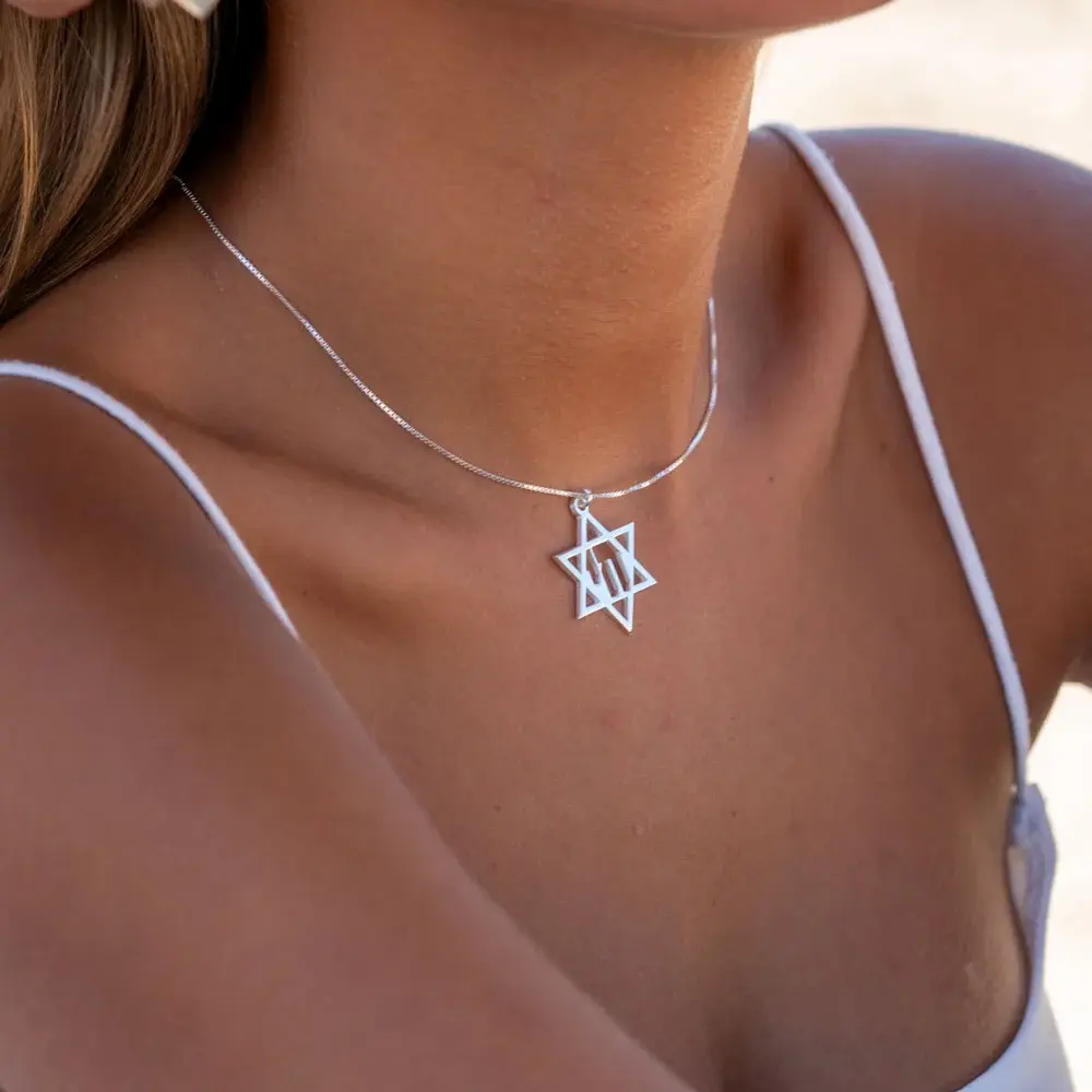 Symbolique Forte : Le “Hai” intégré au cœur de l’Étoile de David pour célébrer la vie.
