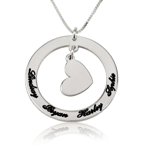 Ce séduisant Collier Cercle et Cœur Personnalisé est un bijou unique pour Mamans.
