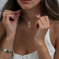 Pour une déclaration de foi chic et discrète optez pour ce joli collier poisson et croix.