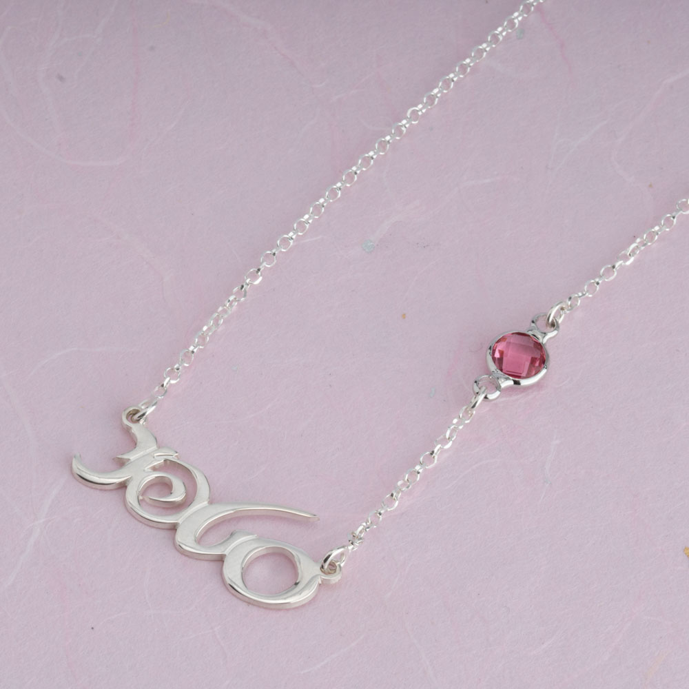 Ce collier prénom écriture hébreu cursif est un modèle séduisant et touchant avec une pierre de naissance fixée sur le côté de la chaîne en maille rollo.