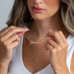 Le pendentif prénom est suspendu à une chaîne en maille vénitienne, disponible en cinq longueurs différentes.