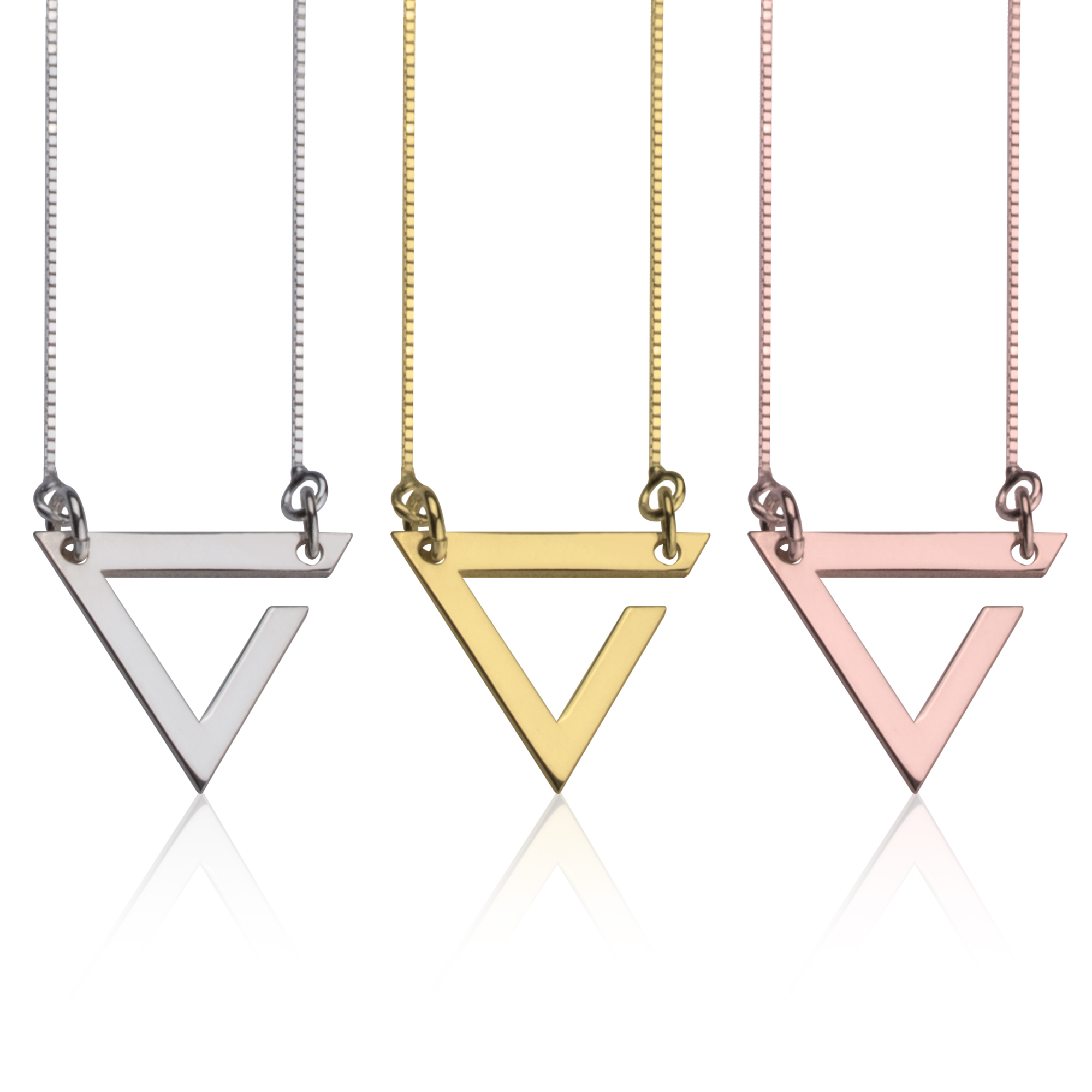 Le triangle, symbole ancestral de l’équilibre et de l’harmonie, apporte une dimension spirituelle à ce bijou contemporain. Sa taille parfaitement étudiée en fait un accessoire discret mais remarquable, qui sublimera aussi bien un col rond qu’un décolleté plus prononcé.